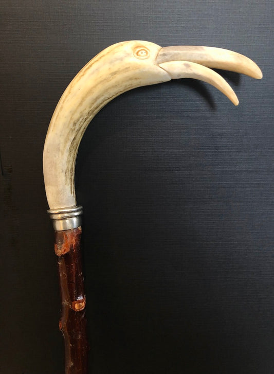 Carved Antler Flamingo Blackthorn Cane By Wendy Yothers