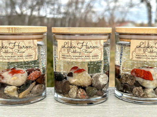 Lake Huron Pudding Stone Candle With Clear Gel Wax