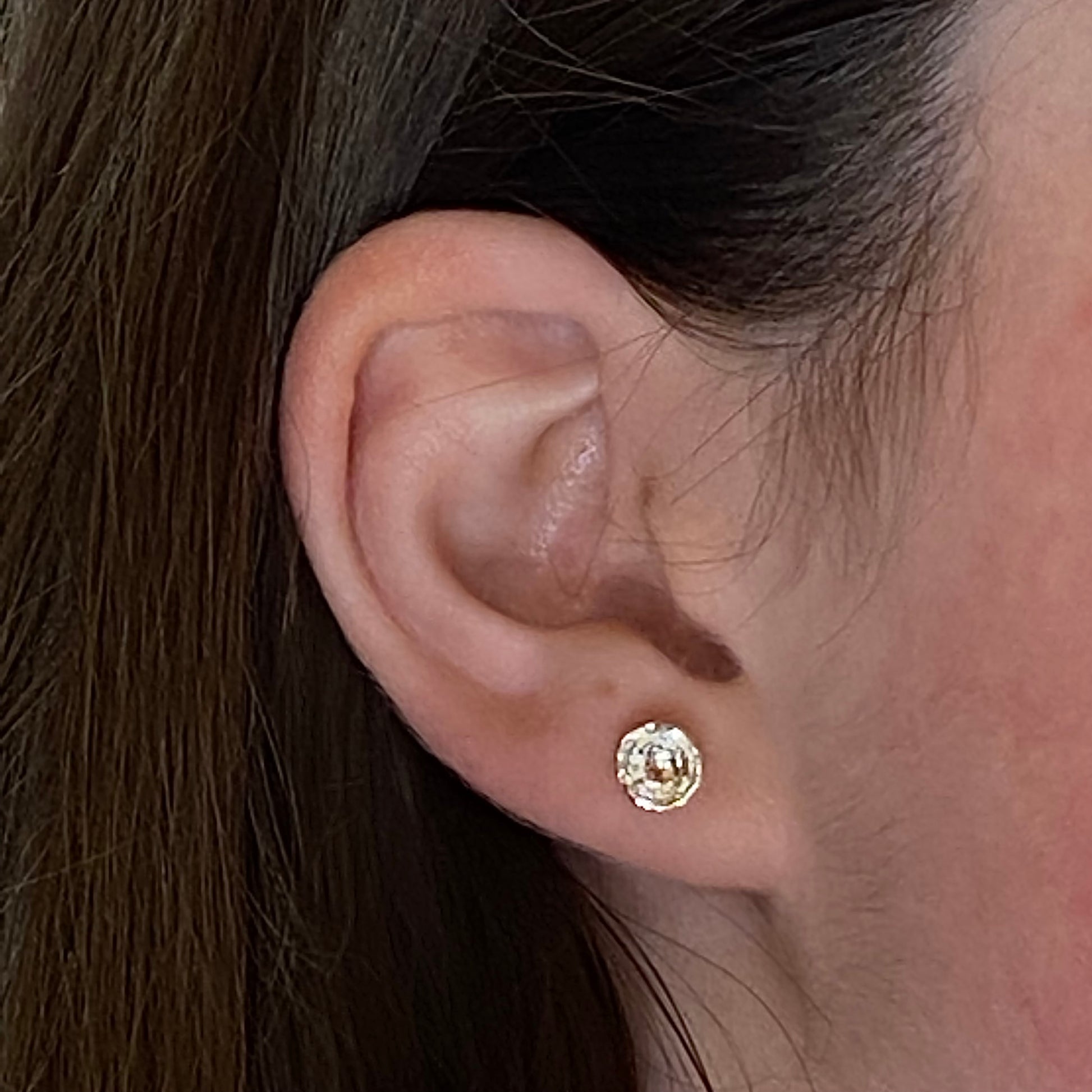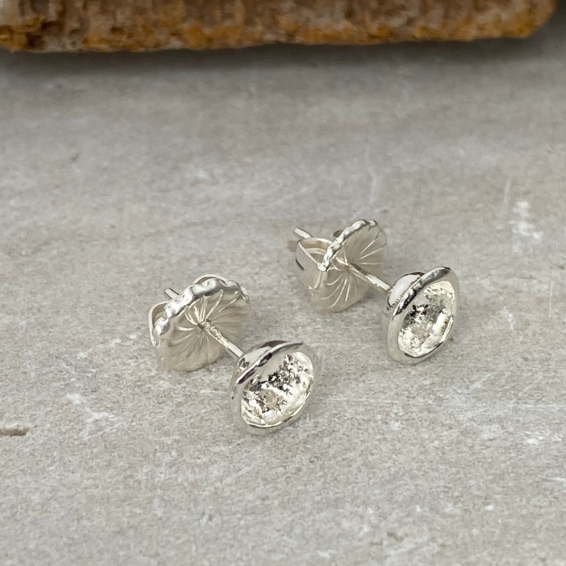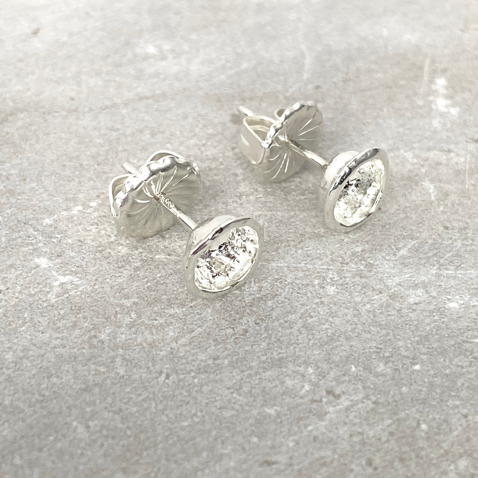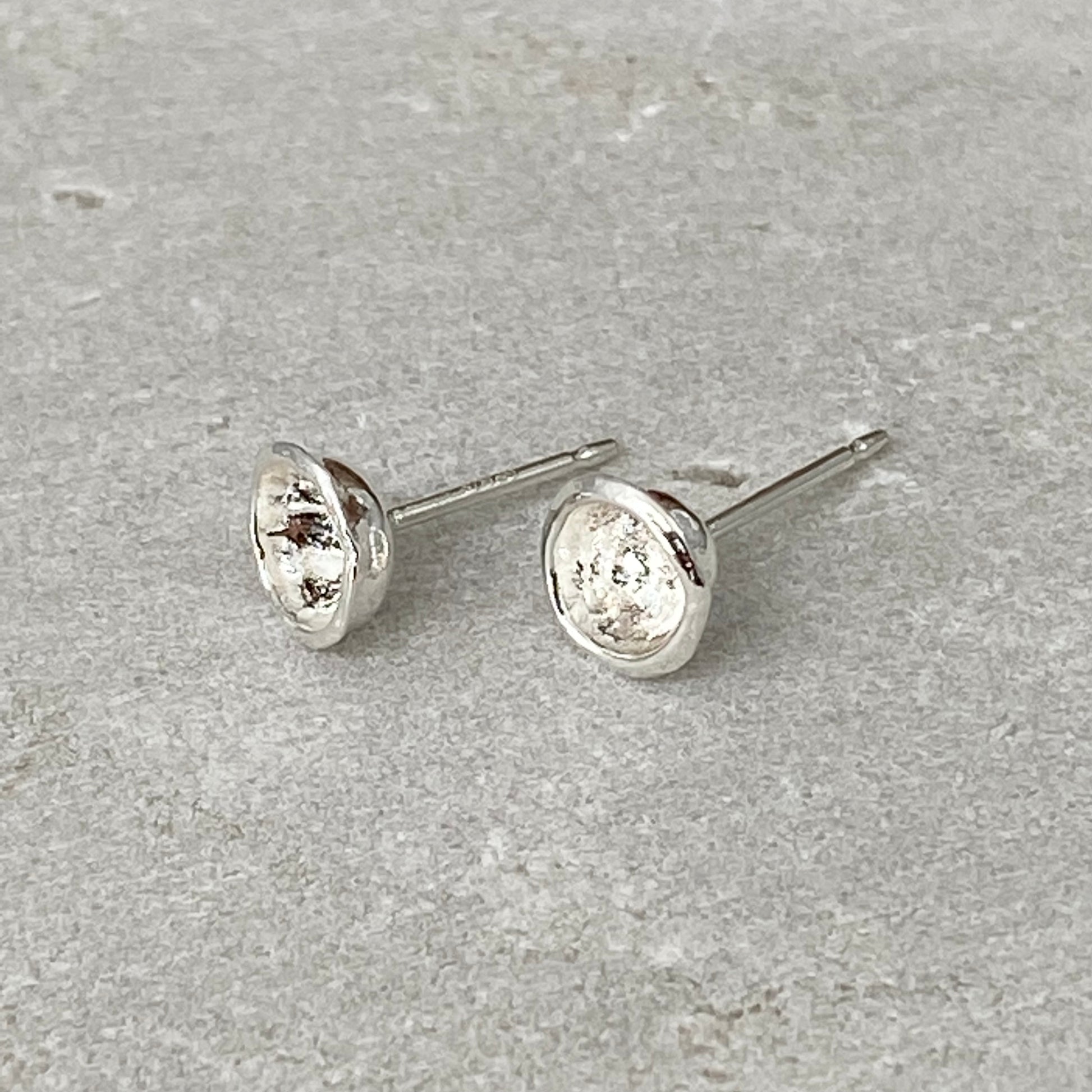Hanni hand crafts her organic "Droplet" stud earrings using sterling silver droplets that she makes using a fun silver-melting technique that forms each distinctive drop. She then attaches a sterling silver post and adds a large, luxury sterling friction-fit back to complete the earring. As each droplet is made individually, please allow for variations in sizes and shapes. All are irregular, and beautiful for their irregularity! A great minimalist silver earring...no two droplets are the same.