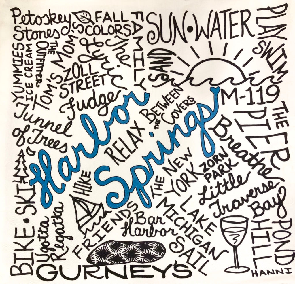 Styled and illustrated by our own Hanni, this throw pillow highlights many favorite places and activities in Harbor Springs. Soft and cozy, this pillow is a great reminder of your seasonal fun in Harbor Springs!