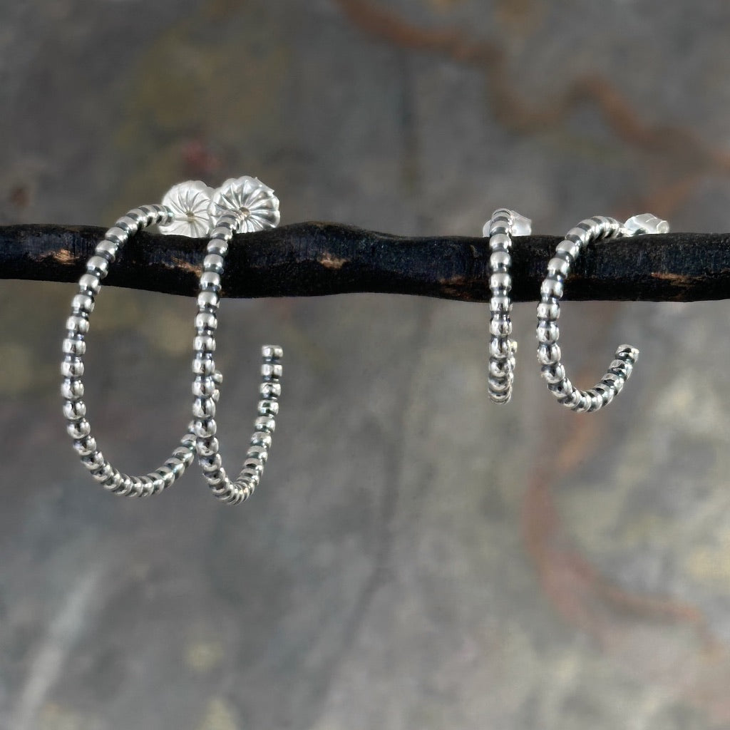 Lightweight Beaded Sterling Silver Hoop Earring