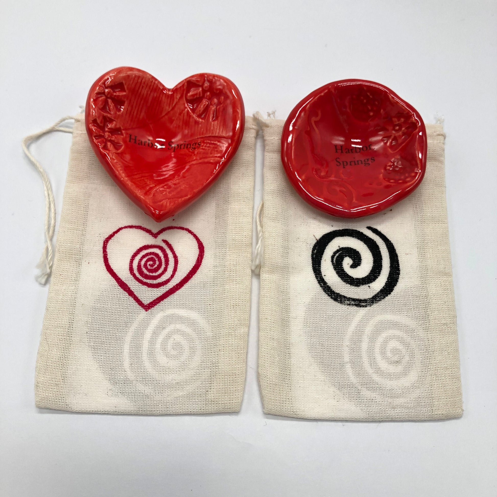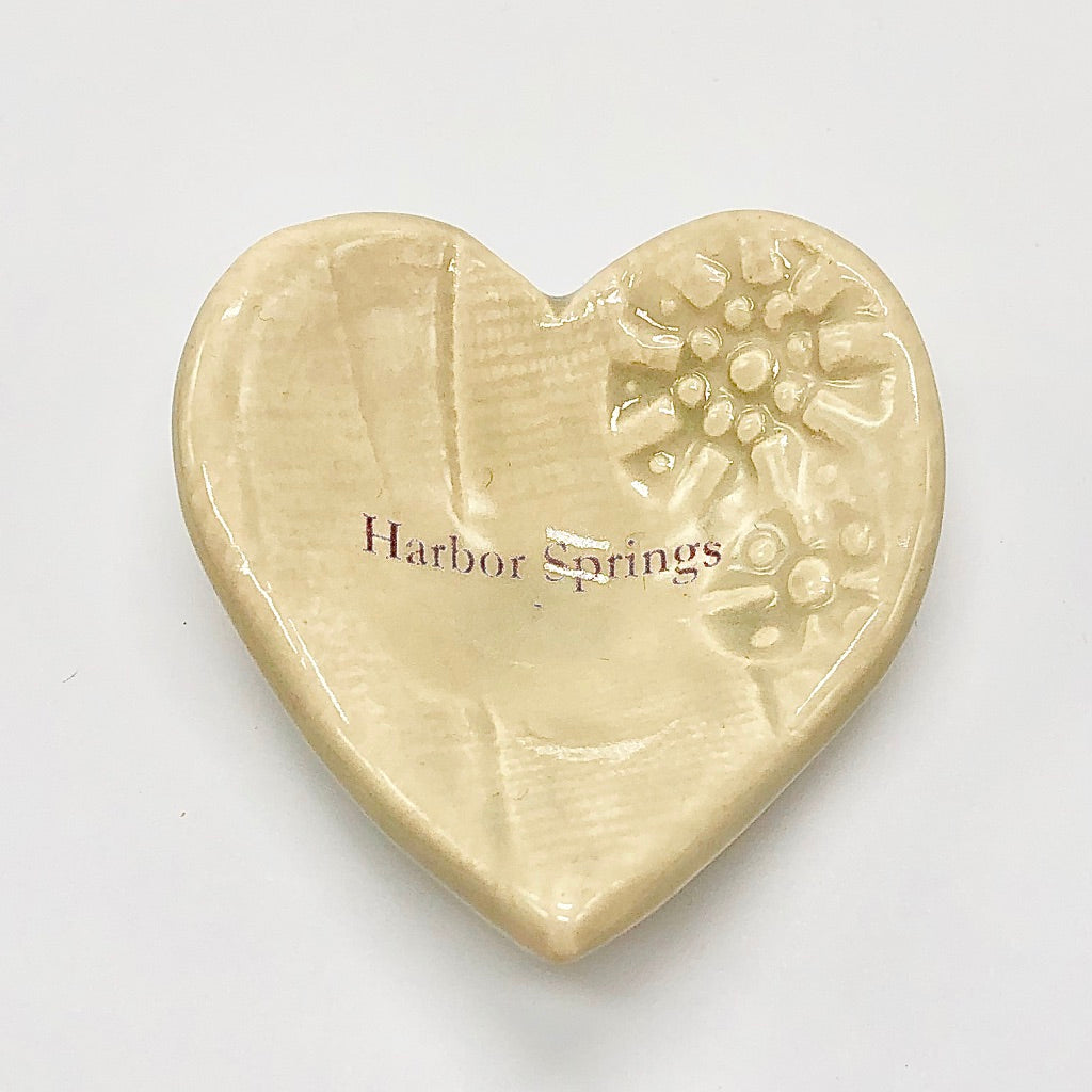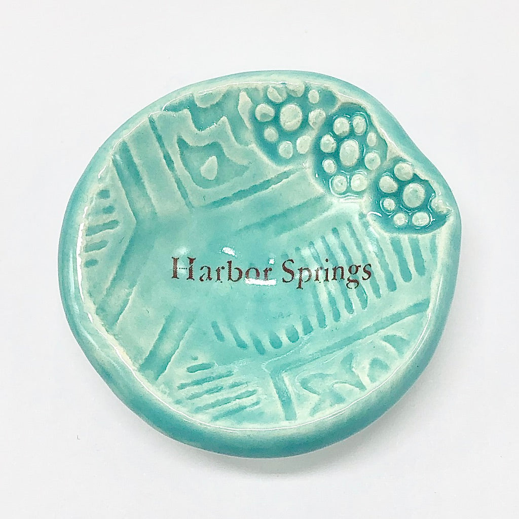 Choose your very own ceramic Harbor Springs trinket dish from our collection! These are great for rings, as gifts, and as really cute reminders of magical Harbor Springs. Available in a large assortment of colors, choose from round or heart shaped!