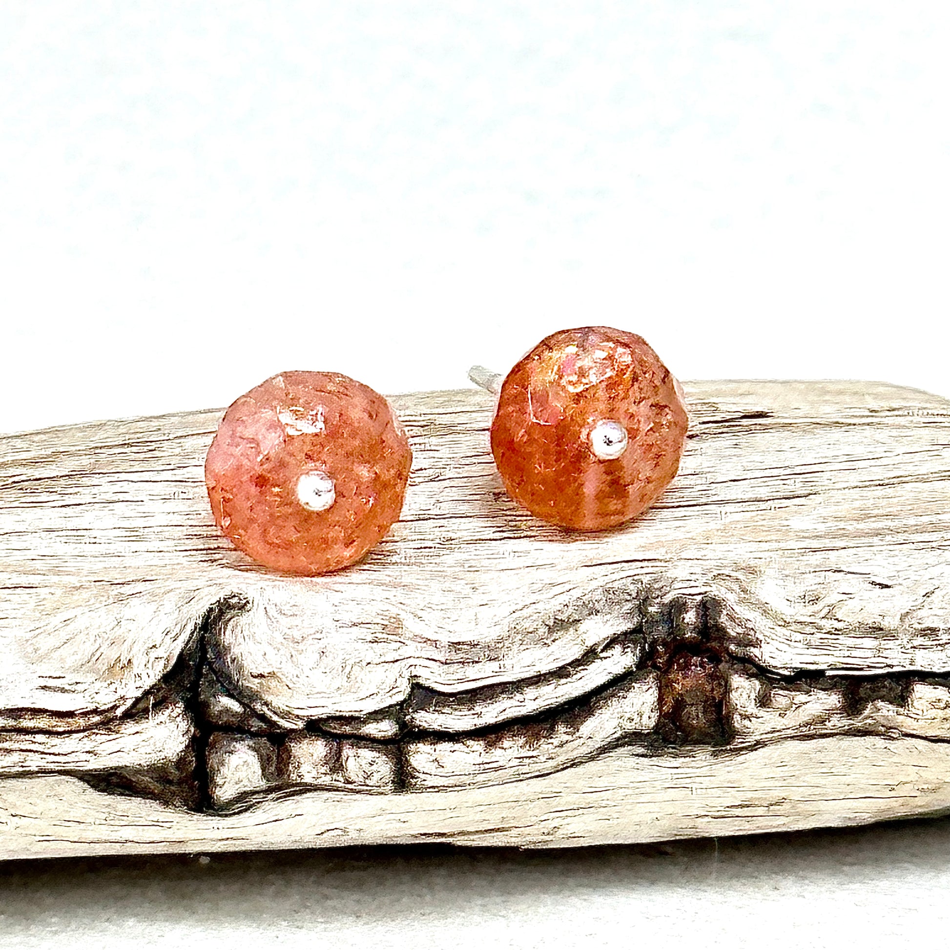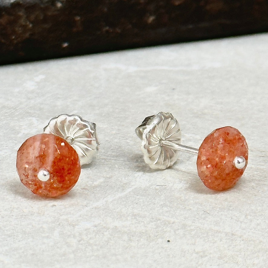 Add a touch of shimmer to your everyday look with our exquisite Oregon sunstone stud earrings. Artist handcrafted in our northern Michigan studio, our little post earrings are made with sterling and Argentium silver and feature faceted sparkling sunstone gemstones (it's impossible to catch the sparkle in the photos!). Hanni's simple yet elegant design is pinned securely, and she cuts a notch near the ends of the posts and rounds the tips to make them super comfortable. Because of how these are made, it is normal if the stones spin a bit on their setting. Elevate your jewelry collection with these eye-catching sunstone stunners...a great minimalist earring with silver and stones polished to perfection! Ships in our signature silver jewelry box.